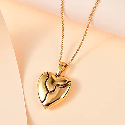 Designer Inspired - Ruby Heart Pendant with Chain (Size 20) in 18K Yellow Gold Vermeil Plated Sterling Silver