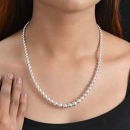 Capture the attention with this graceful designer-inspired sterling silver ball necklace as it blends modern elegance with classic sophistication. Featuring a row of polished sterling silver spheres, this necklace reflects light beautifully, creating a subtle yet striking shine. Crafted in 925 sterling silver, it is hypoallergenic, tarnish-resistant, and perfect for sensitive skin. The secure lobster clasp ensures ease of wear and comfort, making it a versatile addition to both everyday and occasion outfits. Whether layered with other pieces or worn alone, this necklace adds a touch of refined glamour, making it a valuable and versatile accessory for any jewellery collection.
