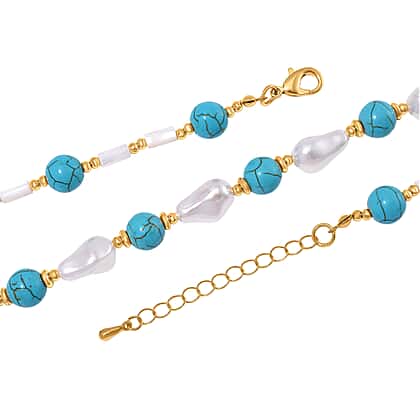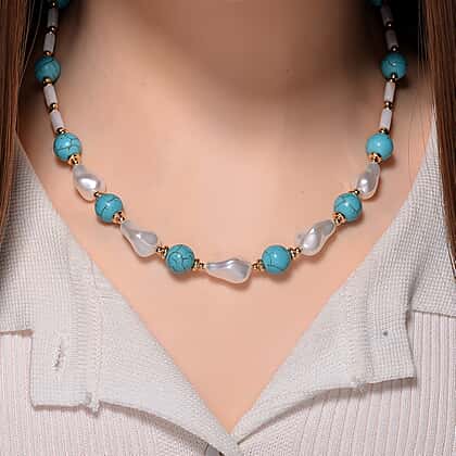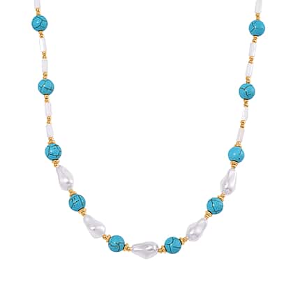 Designer Inspired - White Shell Pearl & Blue Howlite Necklace (Size 18-2 Ext) 125.00 Ct.