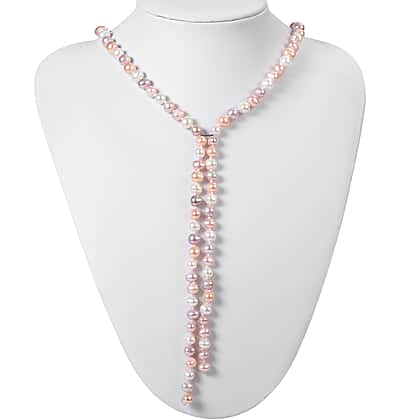 Designer Inspired-Multi Colour Freshwater Pearl Necklace in Sterling Silver