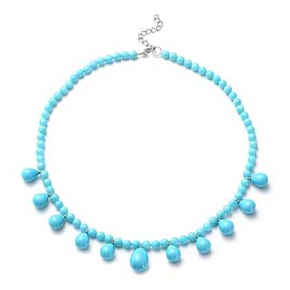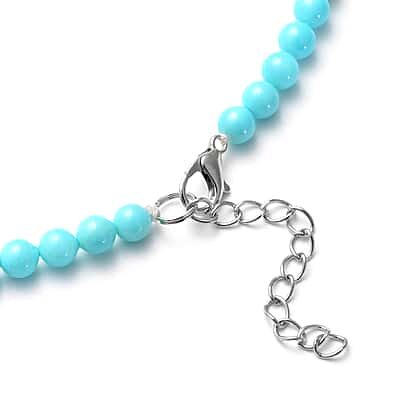 Turquoise Blue Shell Pearl Necklace Size 20 in Silver Tone