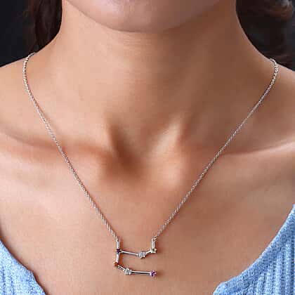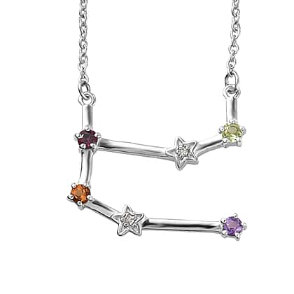 0.33 Ct. Multi Gemstone Gemini Constellation Necklace Size 20 in Platinum Plated Sterling Silver