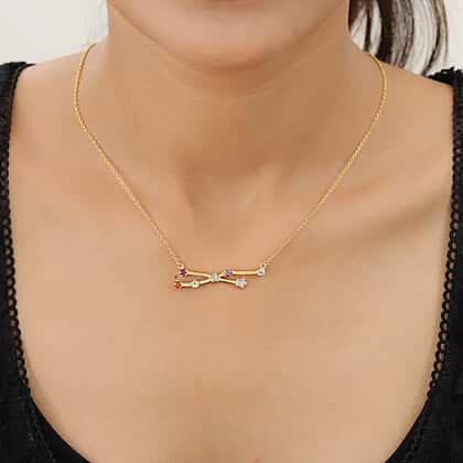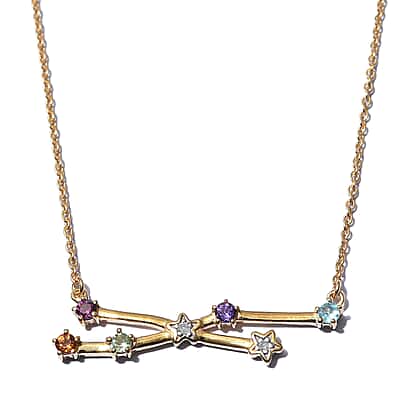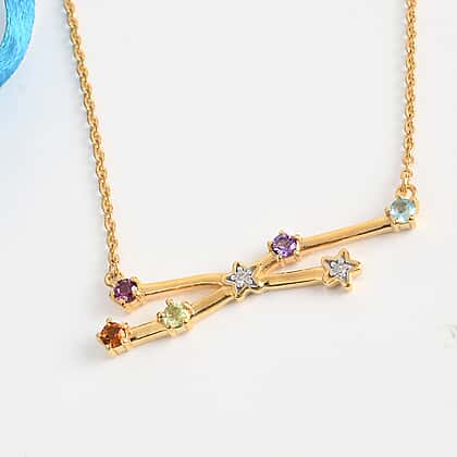 0.65 Ct. Multi Gemstones Taurus Constellation Necklace Size 20 in Gold Plated Sterling Silver