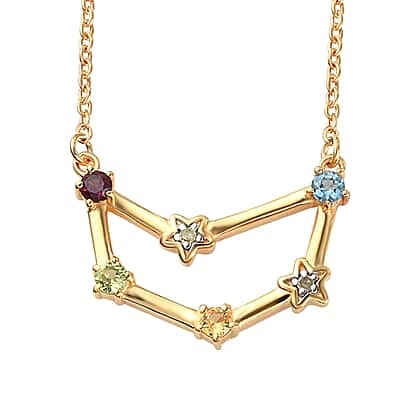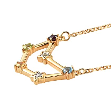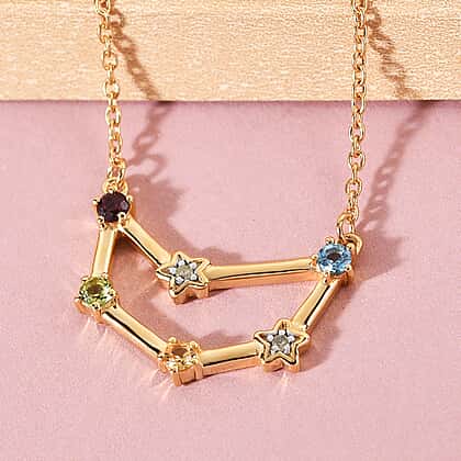 0.29 Ct. Multi Gemstones Capricorn Constellation Necklace Size 20 in Gold Plated Sterling Silver