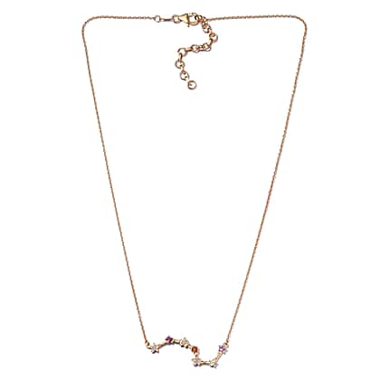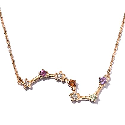 0.34 Ct. Multi Gemstones Sagittarius Constellation Necklace Size 20 in Gold Plated Sterling Silver