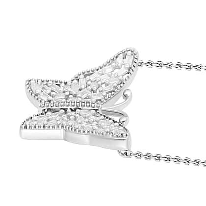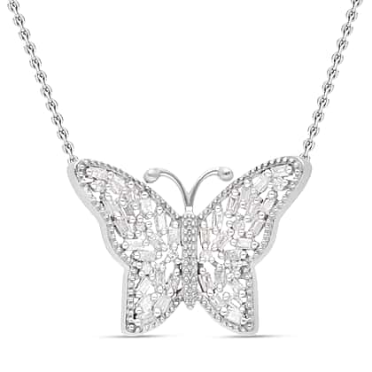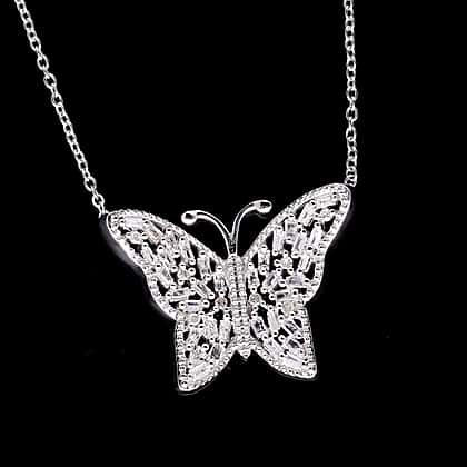 Diamond Butterfly Necklace (Size - 18-20) in Platinum Overlay Sterling Silver 0.26 Ct.