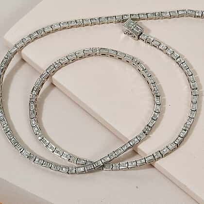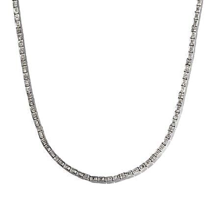 - DIAMONDS: A total number of 445 diamonds deck the design of this necklace in a station form with the round cut ones studded in a set of four and baguette cut ones lined one after the other in a pattern of every 4 stations