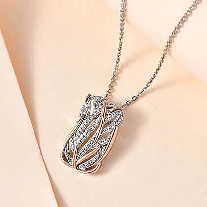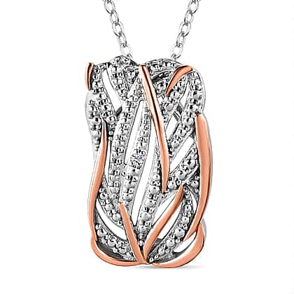 Diamond Criss Cross Pendant with Chain (Size 20) in 18K Vermeil Rose Gold Plated and Platinum Overlay Sterling Silver