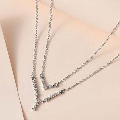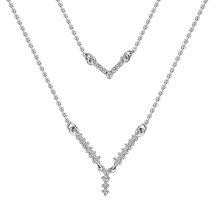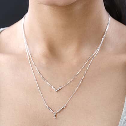 Diamond Necklace (Size - 18) in Platinum Overlay Sterling Silver 0.25 Ct