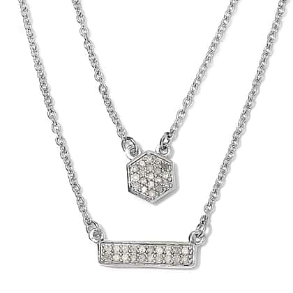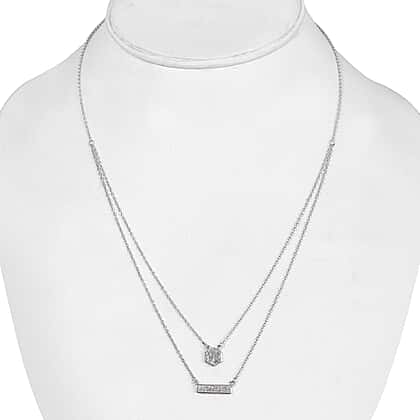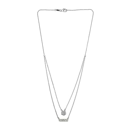 0.23 Ct Diamond Two Strand Necklace in Platinum Plated Sterling Silver 18 Inch