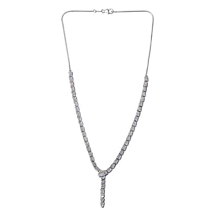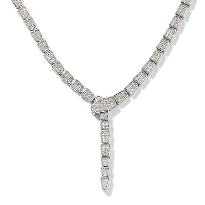 Diamond Serpent Necklace (Size 18) in Platinum Overlay Sterling Silver 1.50 Ct, Silver wt 12.00 Gms