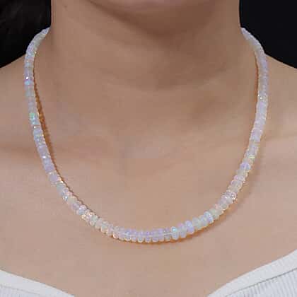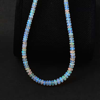D'Joy - AAA Ethiopian Opal Beads Necklace (Size - 18-2 Ext) with Lobster Clasp in Rhodium Overlay Sterling Silver 79.00 Ct.
