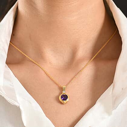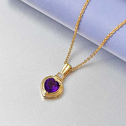 D'Joy - African Amethyst & White Zircon Pendant with Chain (Size 20) in Yellow Gold Tone 1.65 Ct.