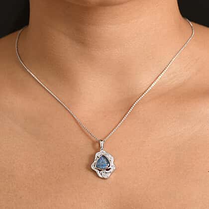 D'Joy - Boulder Opal Triplet & White Zircon Pendant with Chain (Size 20) in Rhodium Overlay Sterling Silver 2.50 Ct.