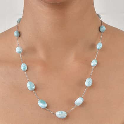 D'Joy - Larimar Beads Necklace (Size - 20) in Rhodium Overlay Sterling Silver 90.00 Ct.