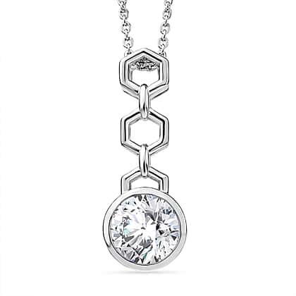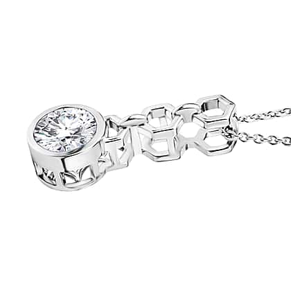 D'Joy - Moissanite Pendant with Chain (Size 20) in Platinum Overlay Sterling Silver 1.00 Ct.