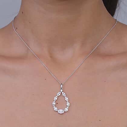 D'Joy - Moissanite Pendant with Chain (Size 20) in Rhodium Overlay Sterling Silver 1.16 Ct.