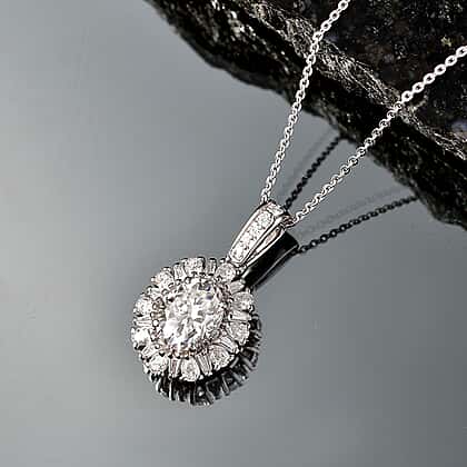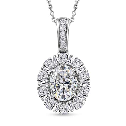 D'Joy - Moissanite Pendant with Chain (Size 20) in Rhodium Overlay Sterling Silver 2.71 Ct.