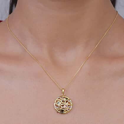 D'Joy - Multi-Tourmaline & White Zircon Cluster Pendant with Chain (Size 20) in Yellow Gold Plated Sterling Silver 1.12 Ct.