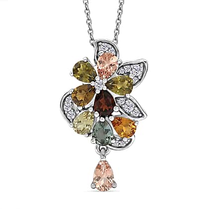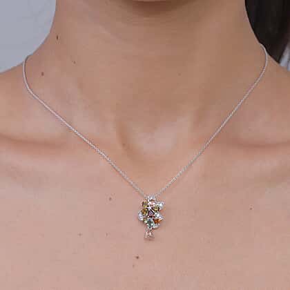 D'Joy - Multi-Tourmaline & White Zircon Pendant with Chain (Size 20) in Rhodium Overlay Sterling Silver 1.64 Ct.