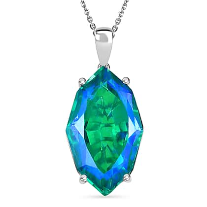 D'Joy - Peacock Triplet Quartz Pendant with Chain (Size 20) in Rhodium Overlay Sterling Silver 20.67 Ct.