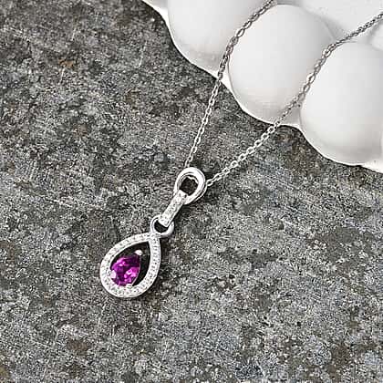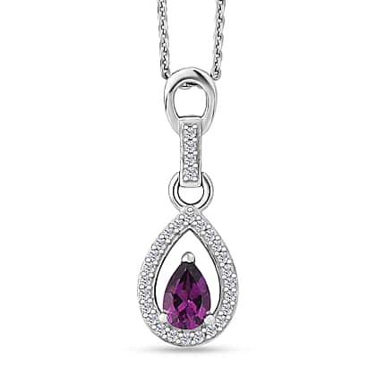 D'Joy - Radiant Ember Garnet & White Zircon Pear Cut Solitaire Pendant with Chain (Size 20) in Rhodium Overlay Sterling Silver