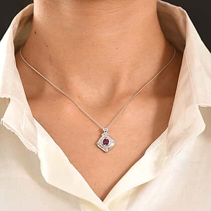 D'Joy - Radiant Ember Garnet & White Zircon Pendant with Chain (Size 20) in Rhodium Overlay Sterling Silver 1.00 Ct.