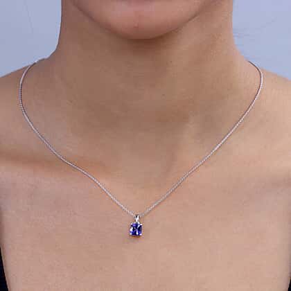 D'Joy - Tanzanite Solitaire Pendant with Chain (Size 20) in Rhodium Overlay Sterling Silver 1.35 Ct.