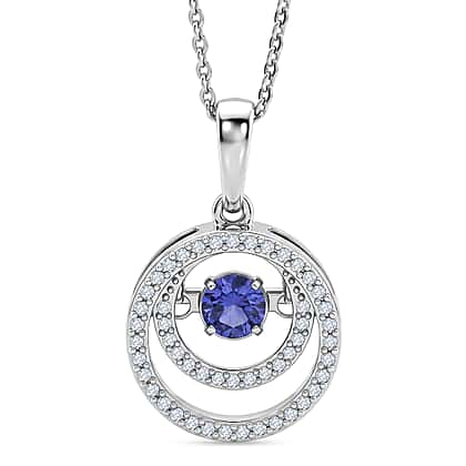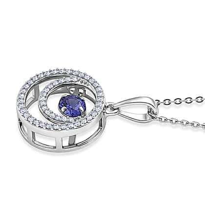 D'Joy - Tanzanite & White Zircon Solitaire Pendant with Chain (Size 20) in Rhodium Overlay Sterling Silver