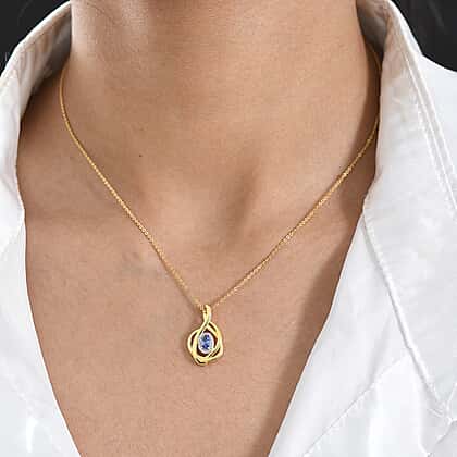 D'Joy - Tanzanite & White Zircon Twisted Halo Pendant with Chain (Size 20) in Yellow Gold Plated Sterling Silver
