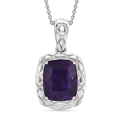 D'Joy AAA African Amethyst Pendant with Chain (Size 20) in Rhodium Overlay Sterling Silver 5.25 Ct.