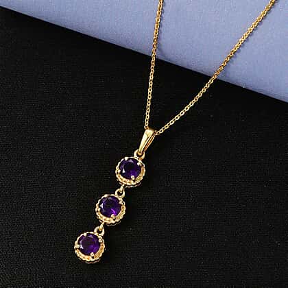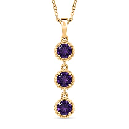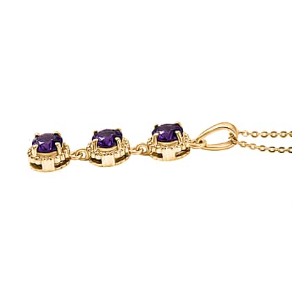 D'Joy AAA African Amethyst Trilogy Pendant with Chain (Size 20) in Yellow Gold Plated Sterling Silver 1.39 Ct.