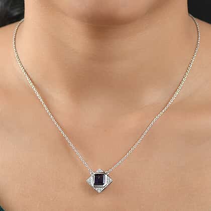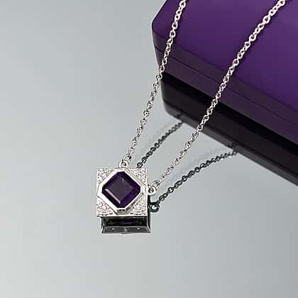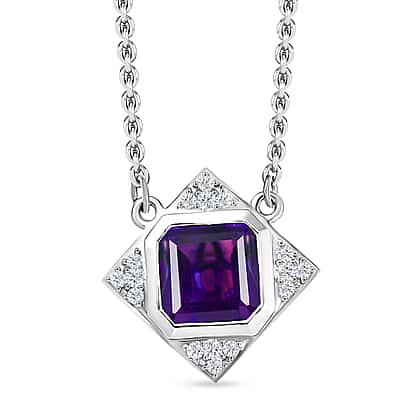 D'joy AAA African Amethyst & White Zircon Necklace (Size - 20) with Lobaster Clasp in Rhodium Overlay Sterling Silver 2.70 Ct.