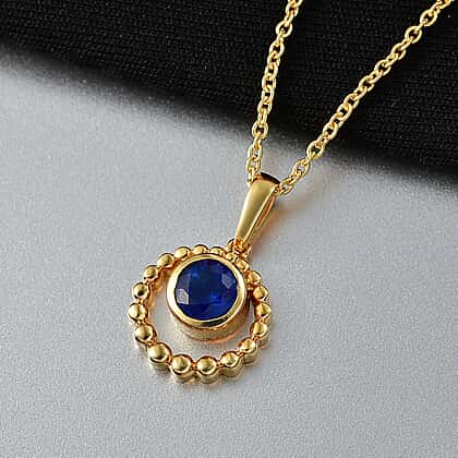 D'Joy AAA Natural Kashmir Kyanite Solitiare Pendant with Chain (Size 20) in Yellow Gold Plated Sterling Silver 1.15 Ct.
