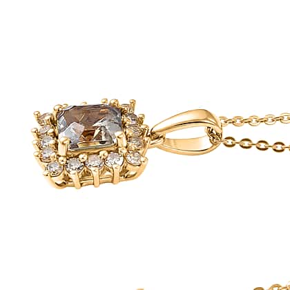 D'Joy AAA Natural Turkizite (Asscher Cut 1.32ct) & Lab Grown Yellow Diamond (SI) Pendant With Chain (Size 20) in 18K Vermeil Yellow Gold Sterling Silver 1.72 Ct.