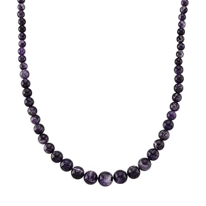 D'Joy African Amethyst Beads Necklace (Size - 20) with Magnetic Lock in Rhodium Overlay Sterling Silver 375.00 Ct.