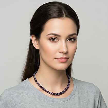Make a bold statement with this D'Joy beads necklace, featuring beautifully crafted African amethyst in beads, known for their deep, rich purple hue. Meticulously crafted in rhodium overlay on 925 sterling silver, this piece ensures lasting durability and mirror like shine. The magnetic lock ensures ease of wear while providing a secure fit. The shiny beads makes this necklace perfect for both everyday wear and special occasions. Its timeless design is sure to elevate any outfit with its vibrant colour and sophisticated charm.