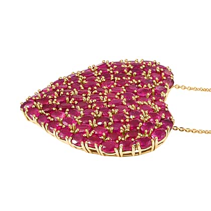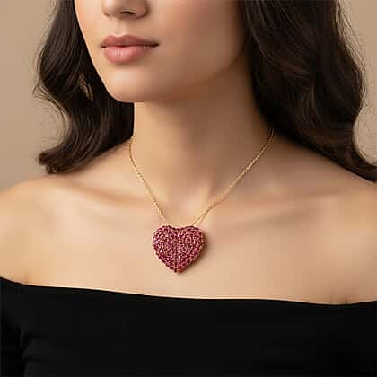 D'Joy African Ruby Heart Pendant with Chain (Size 20) in 18K Vermeil Yellow Gold Plated Sterling Silver 22.62 Ct, Silver Wt. 11.01 Gms.