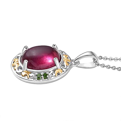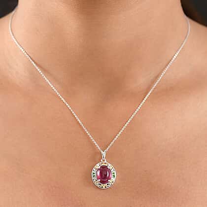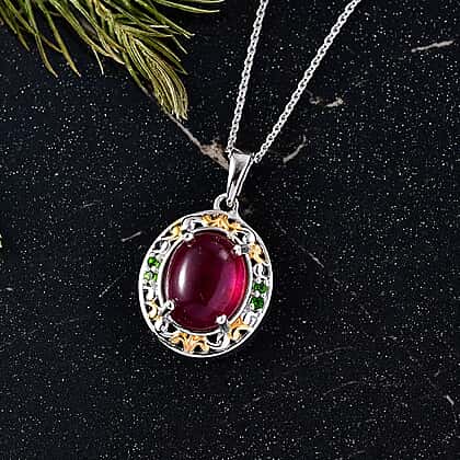 D'Joy African Ruby, Natural Chrome Diopside Pendant with Chain (Size 20) in 18K Vermeil Yellow Gold Plated and Rhodium Overlay Sterling Silver 5.90 Ct.