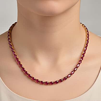 D'Joy African Ruby Necklace (Size 20) with GB Lock Box in 18K Vermeil Yellow Gold Plated Sterling Silver 54.72 Ct, Silver Wt. 24.50 Gms.