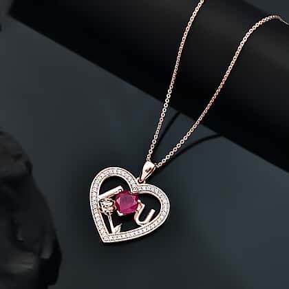 D'Joy African Ruby & White Zircon Heart Pendant with Chain (Size - 20) in 18K Vermeil Rose Gold Plated Sterling Silver 3.73 Ct.