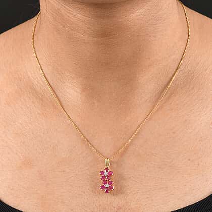 D'joy African Ruby & White Zircon Pendant with Chain (Size 20) in 18K Yellow Gold Plating Sterling Silver 2.32 Ct.