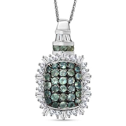 D'Joy Alexandrite & Moissanite Pendant with Chain (Size 20) in Rhodium Overlay Sterling Silver 1.80 Ct.