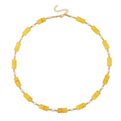 D'Joy Amber, White Fresh Water Pearl Beads Necklace Sterling Silver 65.000 Ct.