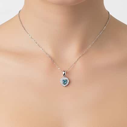 D'Joy Blue Zircon & White Zircon Pendant with Chain (Size 20) in Rhodium Overlay Sterling Silver 1.51 Ct.