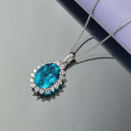 D'Joy Capri Blue Triplet Quartz & White Zircon Pendant with Chain (Size 20) in Rhodium Overlay Sterling Silver 7.25 Ct.