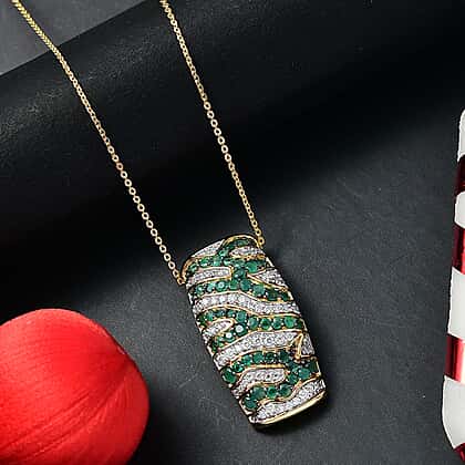 D'Joy Emerald & Moissanite Pendant with Chain (Size 20) in 18K Vermeil Yellow Gold Plated Sterling 2.44 Ct, Silver Wt. 5.65 Gms.