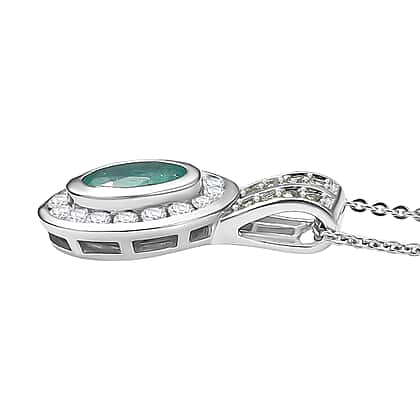 D'Joy Emerald, Moissanite and Tsavorite Garnet Halo Pendant with Chain (Size 20) in Rhodium Overlay Sterling Silver 1.80 Ct.