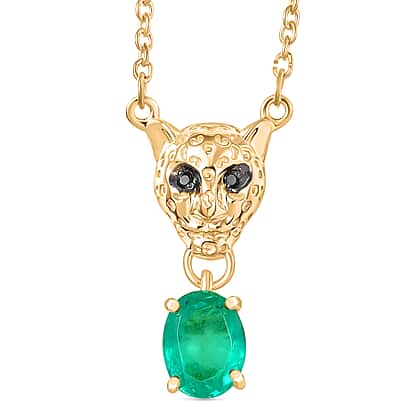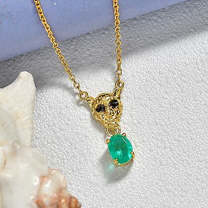 D'Joy Emeraldine Triplet Oval Cut & Black Spinel Necklace (Size - 20) in Yellow Gold Tone 1.62 Ct.