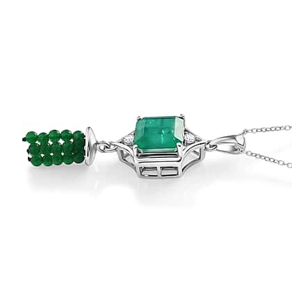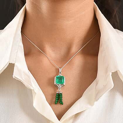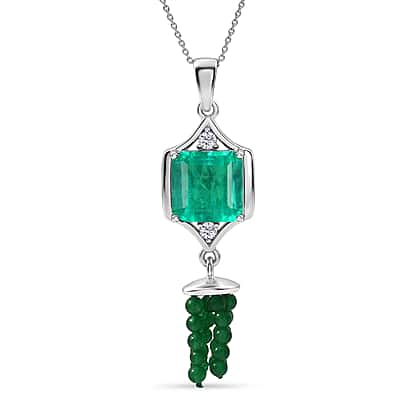 D'Joy Emeraldine Triplet Quartz, Green Quartz & White Topaz Pendant with Chain (Size 20) in Platinum Overlay Sterling Silver 13.82 Ct